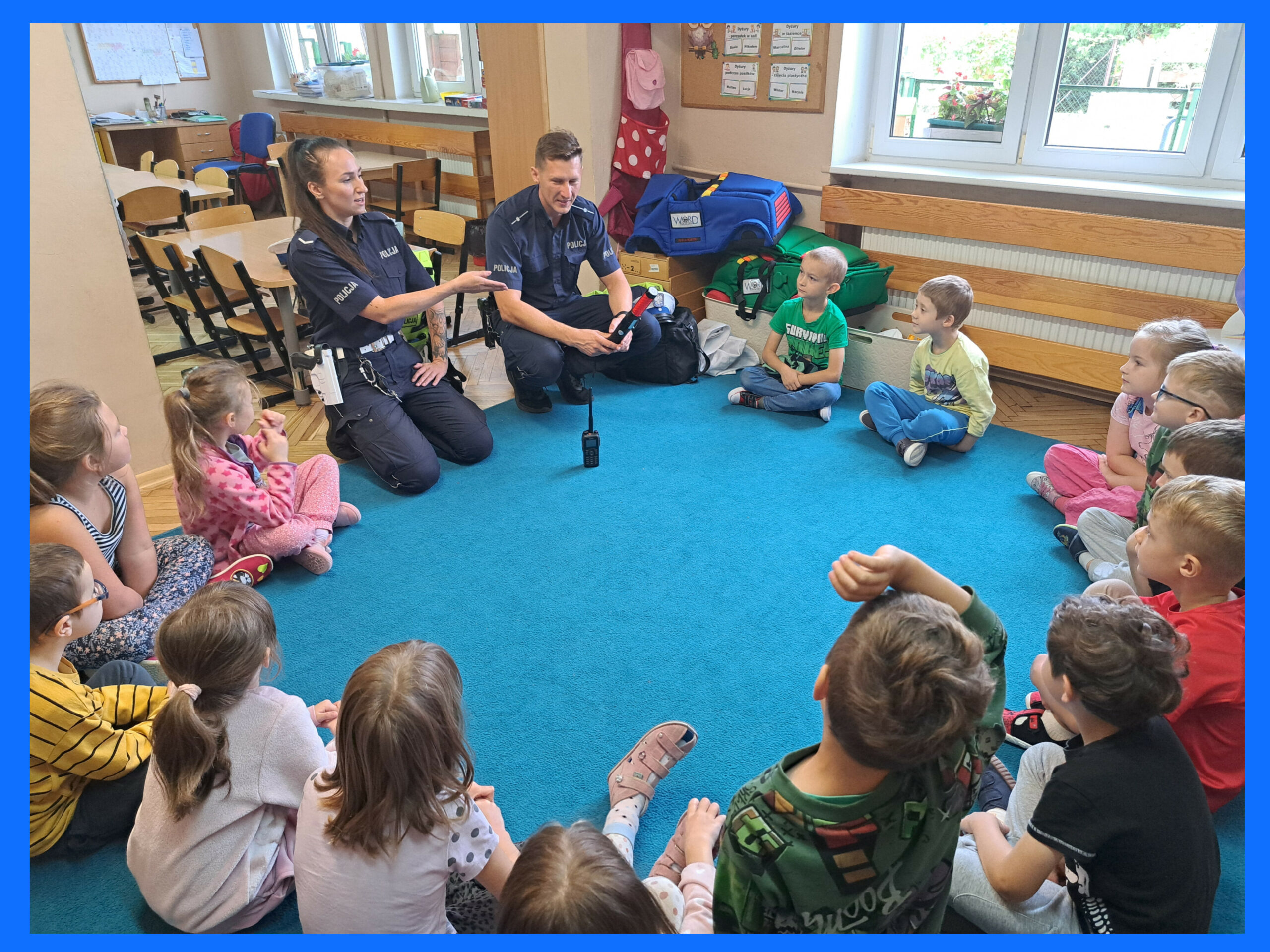 „BEZPIECZEŃSTWO NA DRODZE” – WIZYTA PANI POLICJANTKI I PANA POLICJANTA W PRZEDSZKOLU