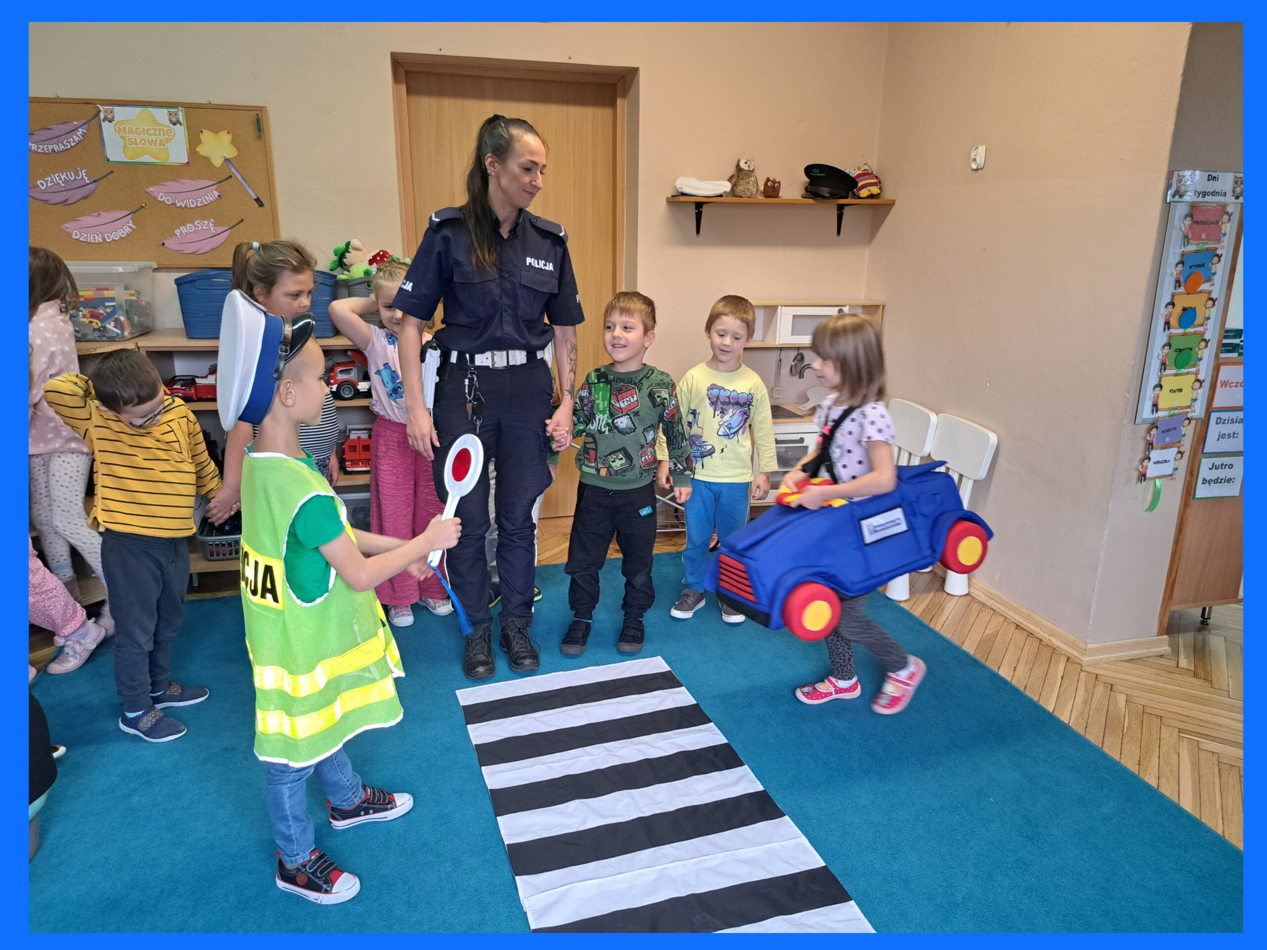 „BEZPIECZEŃSTWO NA DRODZE” – WIZYTA PANI POLICJANTKI I PANA POLICJANTA W PRZEDSZKOLU