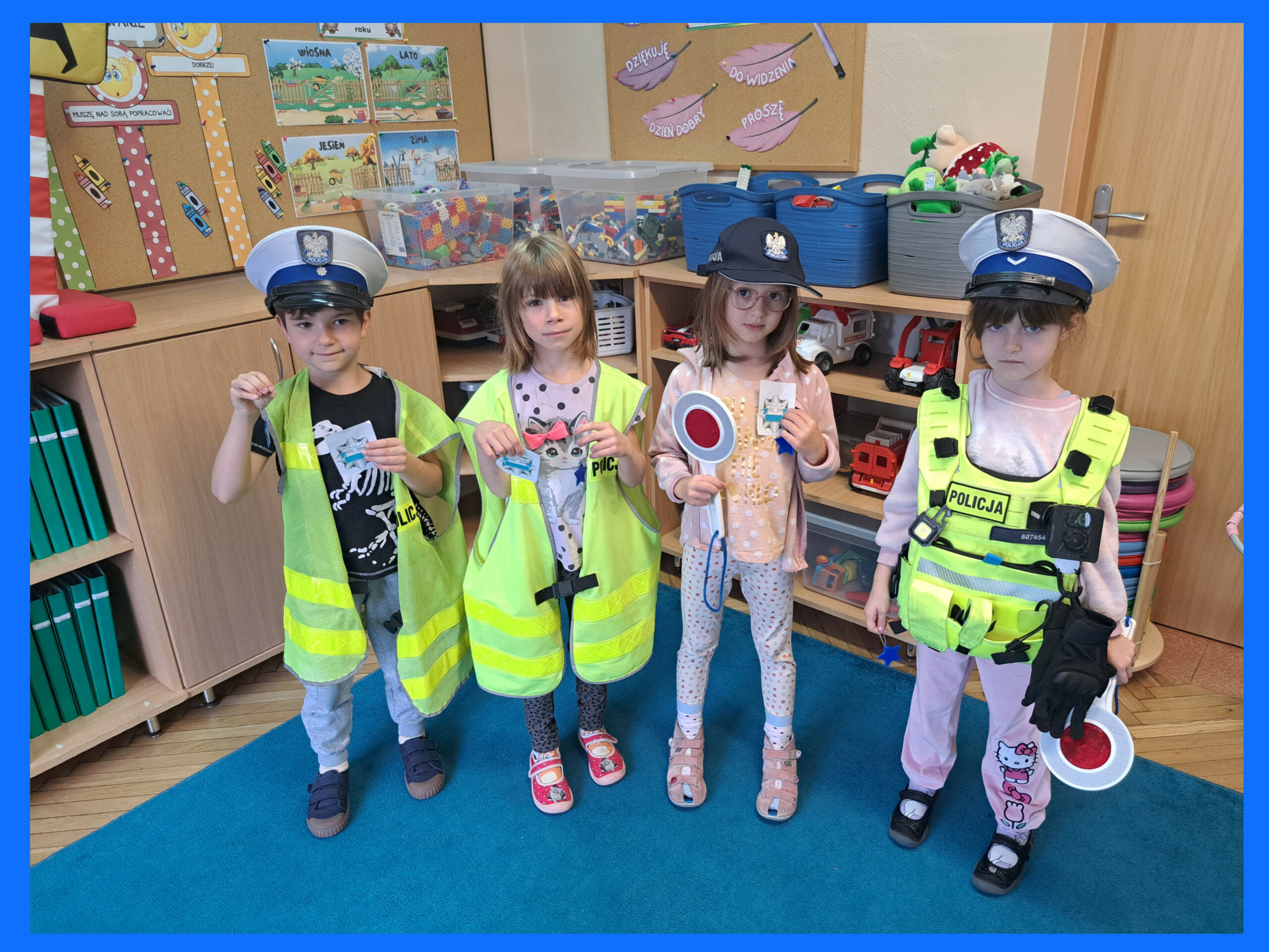 „BEZPIECZEŃSTWO NA DRODZE” – WIZYTA PANI POLICJANTKI I PANA POLICJANTA W PRZEDSZKOLU
