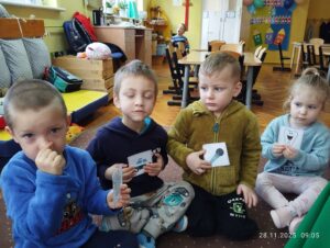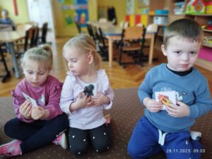 28 listopada w naszej grupie świętowaliśmy Andrzejki! Było to radosne i pełne magii wydarzenie, podczas którego dzieci poznawały tradycje związane z tym dniem. Sala była pięknie udekorowana, a zajęcia miały wyjątkowy, magiczny charakter. Przedszkolaki brały udział we wróżbach, zabawach ruchowych oraz integracyjnych. To wszystko pobudzało wyobraźnię i sprawiało im wiele radości. Cały dzień upłynął w pogodnej atmosferze, a dzieci miały okazję do wspólnej zabawy, śmiechu i odkrywania tradycji w sposób dostosowany do ich wieku.