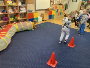 współpracy w grupie, poprawianie orientacji przestrzennej i koordynacji wzrokowo