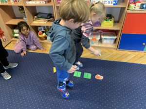 „OWOCE” – zajęcia miały na celu wzmacnianie siły mięśni stóp. Kształtowały prawidłową postawę,